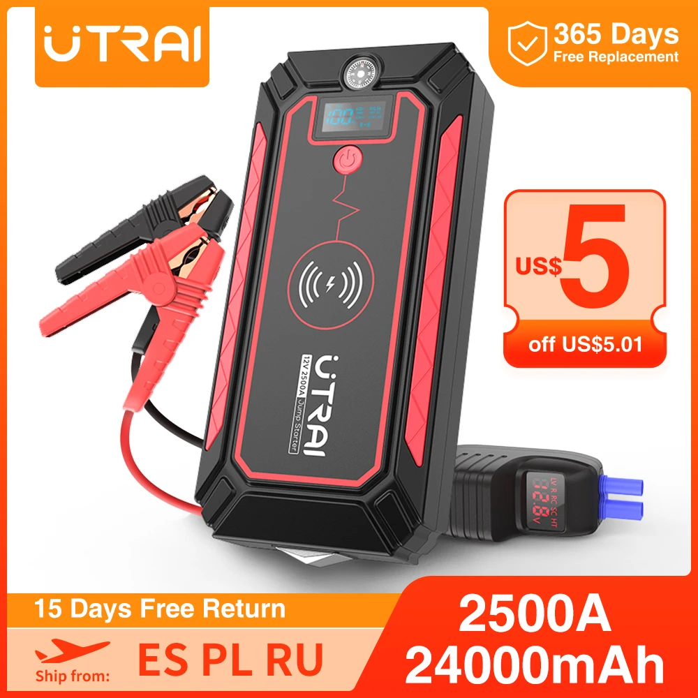 UTRAI Car Jump Starter 24000mAh 2500A Wireless Charger Power Bank For 12V Car Emergency Starter Jstar 4 Auto Car Booster Battery