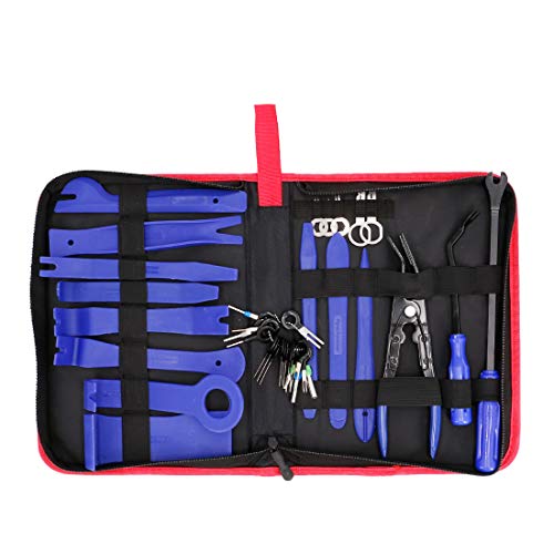 Questo set di strumenti per la rimozione degli assetti per auto UTSAUTO include 37 diversi tipi di strumenti di rifilatura, che è il kit più completo e durevole, ideale per l'installazione o rimozione di impianti audio/radio, pannelli della porta, modanature, emblemi, rivestimenti per finestre o riparazioni di interni automobilistici e restauro di mobili.