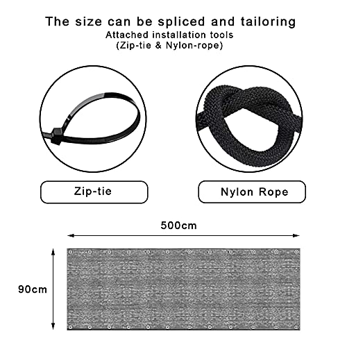 Uuffoo Rete Copertura Ringhiera Balcone, Copri Terrazzo Protezione della Privacy Schermatura Telo, Resistente Raggi UV dal Vento, con Occhielli Corde per Esterno, Piscina, Giardino (500x90cm, Grigio)