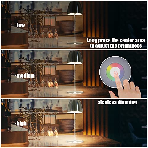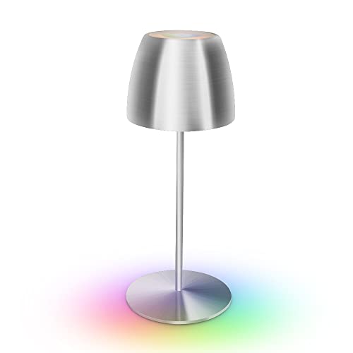Uuffoo Lampada da tavolo a LED a batteria, portatile, dimmerabile, senza fili, con interruttore touch, in metallo RGB, cambia colore, per camera da letto, lettura, lavoro, bar, ristoranti (argento)