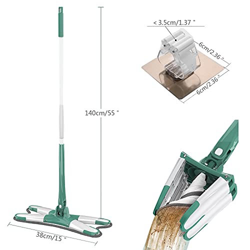 UUMFP Mocio Lavapavimenti, Mocio Piatto autostrizzante, Mocio in Microfibra Wet & Dry, con 3 Cuscinetti, Mop a Compressione per Pavimenti in Laminato, Pavimenti duri, Piastrelle, Marmo (Verde)