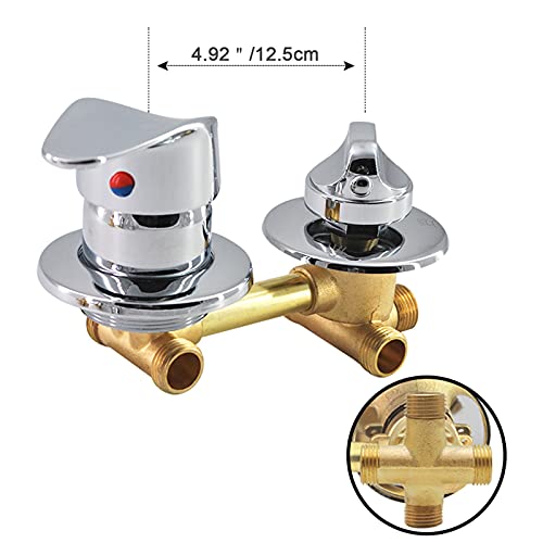 UUMFP Valvola miscelatrice doccia, valvola deviatrice bagno regolabile 2/3/4/5 vie, miscelatore doccia doppio comando filettato in ottone, rubinetto caldo e freddo (4 vie 12, 5 cm)