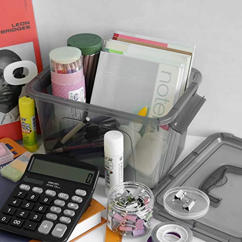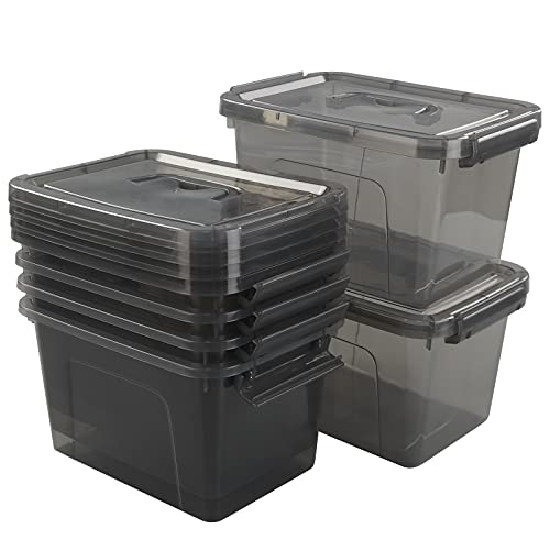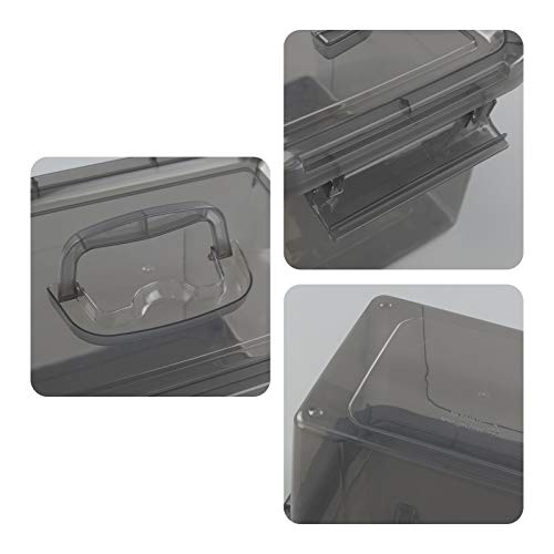 Uumitty Scatola portaoggetti piccola in plastica grigia trasparente da 5 litri con coperchio grigio trasparente e maniglie, 6 confezioni