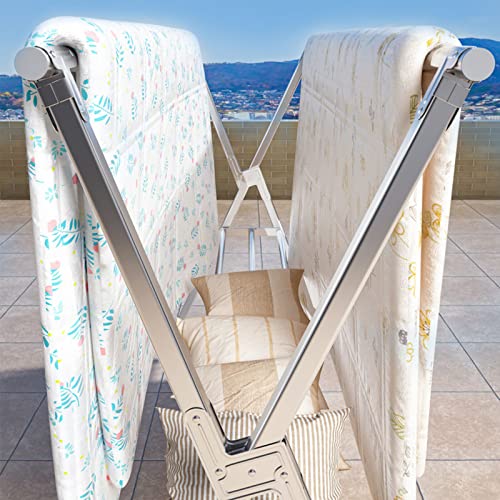 STRUTTURA ROBUSTA: Il nostro stendino da balcone è realizzato con materiali in acciaio inossidabile di qualità superiore, che hanno un'eccellente capacità di carico e durata. Design del gancio di tipo X, robusti giunti centrali, rinforzo antivibrante. Perfetto per asciugare trapunte spesse o oggetti pesanti