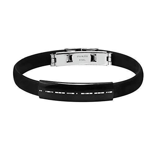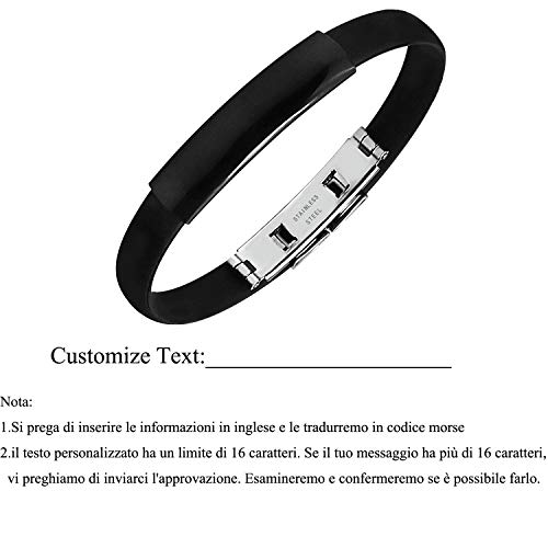 Uwows Personalizza Bracciale in pelle e silicone codice Morse per uomo Bracciale inciso con codice segreto per fidanzato Fratello Padre Marito Bracciale padrino Messaggio nascosto (silicone-2)