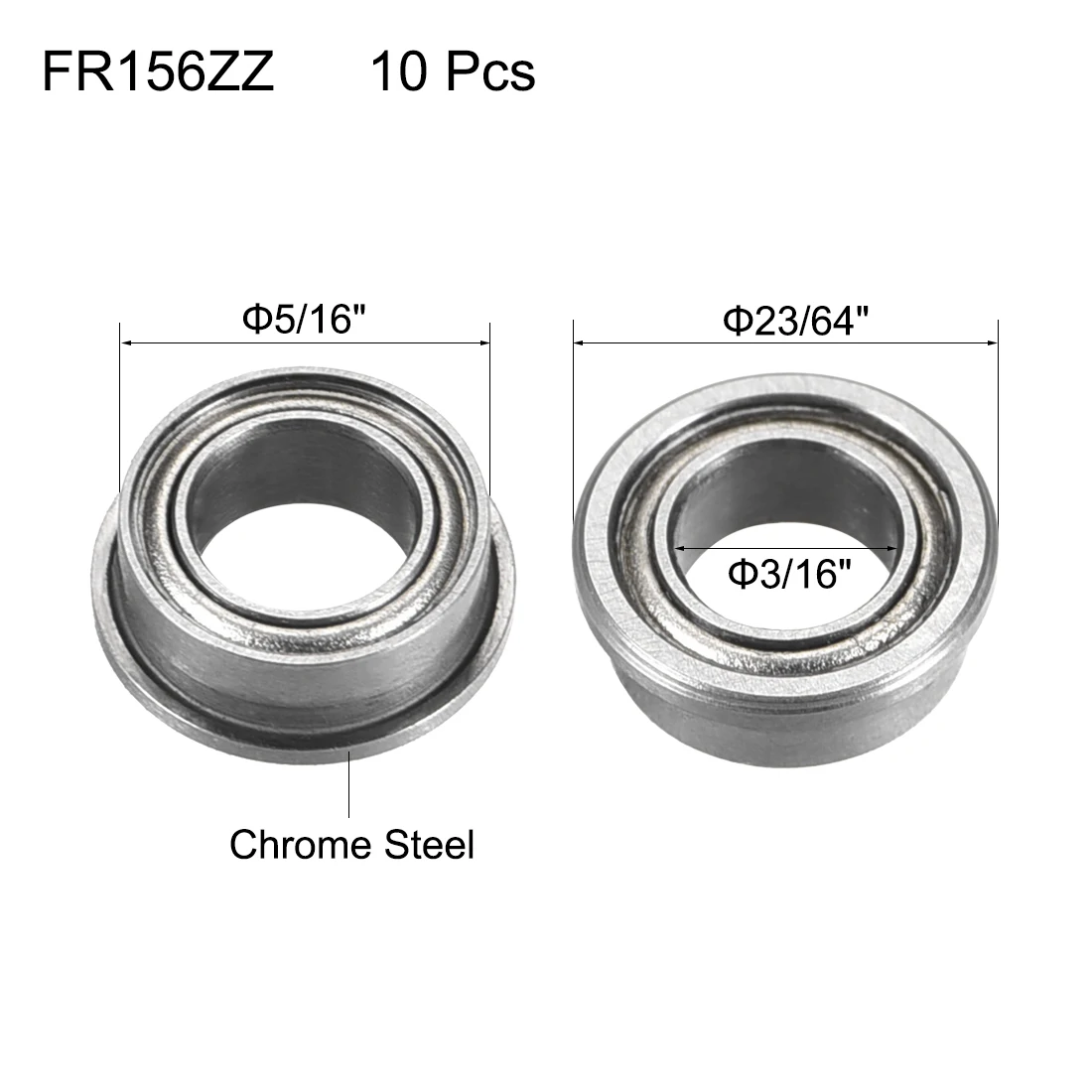 Uxcell 10pcs FR156ZZ Flange Ball Bearing 3/16" x 5/16" x 1/8" Double Metal Shielded (GCr15) Chrome Steel Bearings