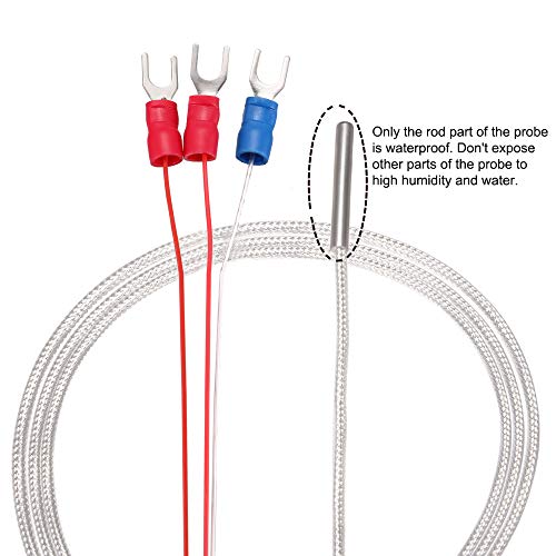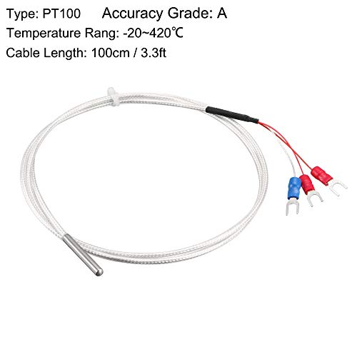 Uxcell PT100 RTD Sensore Temperatura Sonda 3 Fili Termocoppia Cavo Acciaio Inossidabile 100cm(3.3ft),A Grade