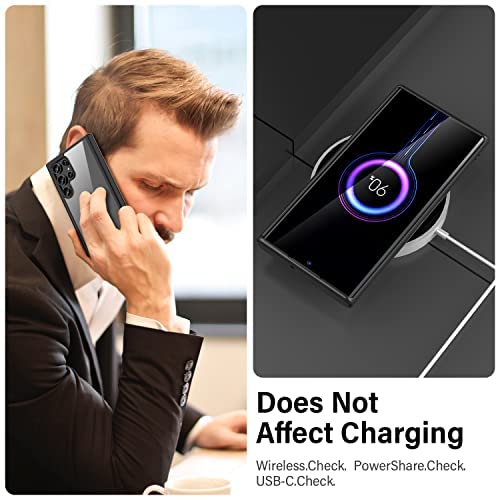 Uyiton [1+1Pezzi] Compatibile con Samsung Galaxy S22 Ultra Cover Trasparente Davvero Anti-ingiallimento, 1 Pezzi Custodia Antiurto + 1 Pezzi Protezione Fotocamer, Anti-Graffio Durezza 9H - Nero