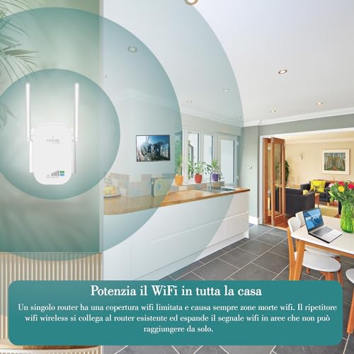 【Amplificatore WiFi Senza Fili 5Ghz/1200Mbps】UYTUDL Ripetitore WiFi La velocità wireless è combinata, raggiunge fino a 300Mbit/s (37.5MB/s) sulla banda 2.4 GHz e 867Mbit/s(108.375MB/s) sulla banda 5GHz. Ideale per potenziare ed estendere il WiFi in tutta la casa per permetterti di sfruttare la connessione Wi-Fi in ogni angolo della casa.