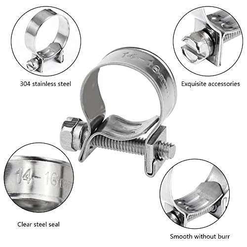 UYUYong 20Pcs Fascette Atringitubo Acciaio Inox T-Bolt linea di Carburante Clip 5 Pcs/14-16mm 5 Pcs /11-13mm 10Pcs / Regolabile Fascetta Stringitubo per Tubo a Parete Sottile
