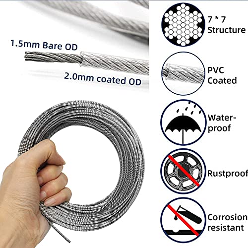 [Materiali di alta qualità] I nostri morsetti per cavi e cavi sono realizzati in acciaio inossidabile 304 di alta qualità, con buona tenacità, elevata resistenza, resistenza alle alte temperature, robustezza e durata. La superficie del filo appendiabiti rivestito in PVC ha una buona resistenza all'acqua e alla ruggine per un uso prolungato.