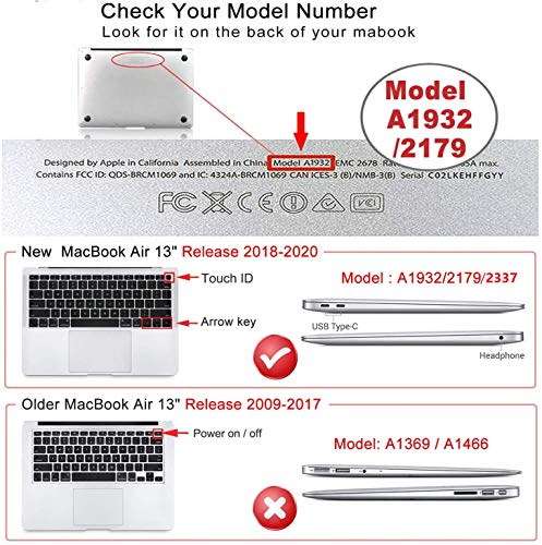 Custodia protettiva antiurto per MacBook Air 13 "Modello A2337 M1 A2179 A1932 con Retina Display solo versione 2020 2019 2018, non compatibile con altri modelli. Si prega di controllare il numero di modello" A1xxx "sul retro del MacBook prima dell'acquisto.