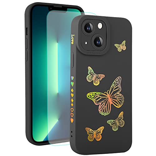 UZEUZA Compatibile con Cover iPhone 13 6.1-Pollici, Morbido Silicone Moda Cute Farfalla Design Custodia iPhone 13 con Pellicola Protettiva per Grils Donne (2 in 1)
