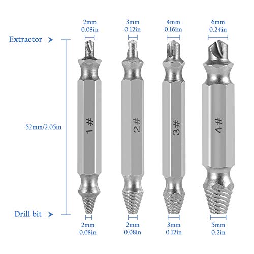 Uzinb 4Pcs Damaged Screw Remover Set Extractor Set Stripped Bolt Extractor