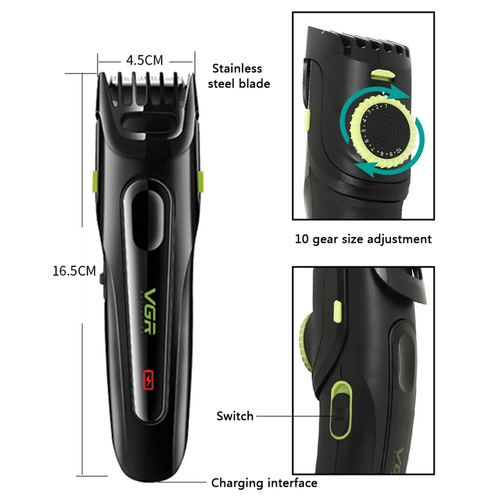 VGR V-013 hair clipper USB rechargeable electric hair trimmer steel cutter head beard trimmer home adult hair cutting machine