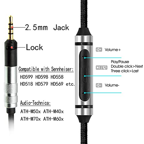V-MOTA Cavo HD598 compatibile con cuffie Sennheiser HD 598 SE/CS/SR HiFi,HD 518 558 569 579 595 599, HD400 Pro, HD2.30 da 1,5 m (con microfono)