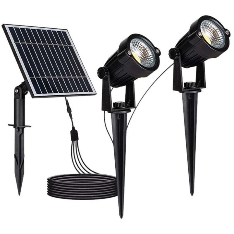 2*Faretti LED da Giardino 2*1.2W con Picchetto e Pannello Solare Colore Nero 3000K IP65