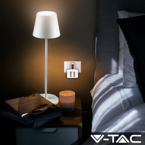 MULTIPRESA V-TAC: Adattatore Multipresa 4 Posti con Interruttore - 2 Prese Laterali 10/16A Bipasso e 2 FrontalI 10/16A con Spina Verticale 16A.