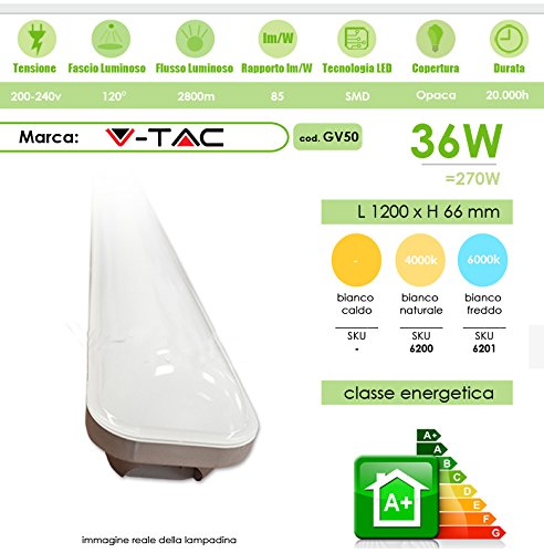 V-TAC TUBO LED 60 90 120 150 cm NEON T8 T5 G13 BARRA PLAFONIERA STAGNA SOFFITTO (Bianco Freddo, GV50)