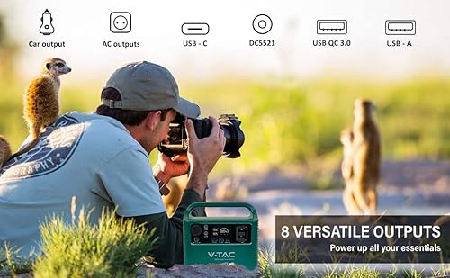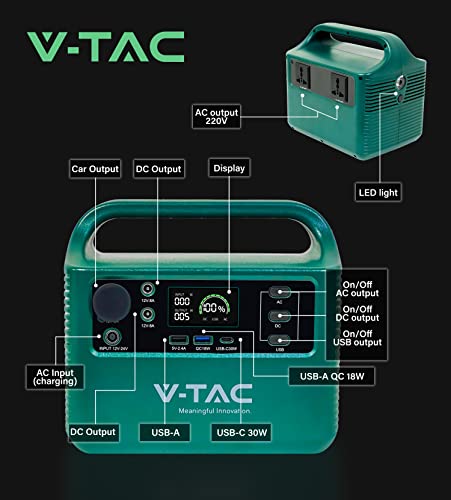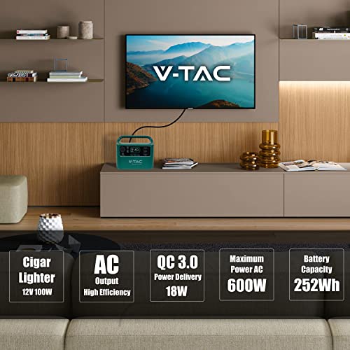 V-TAC Centrale Elettrica Portatile Power Station 2x 300W - Batteria di Accumulo 252Wh - Potenza Max 600W - AC:220V - Display LED - Ricarica con Pannello Fotovoltaico Opzionale o Alimentatore Corrente