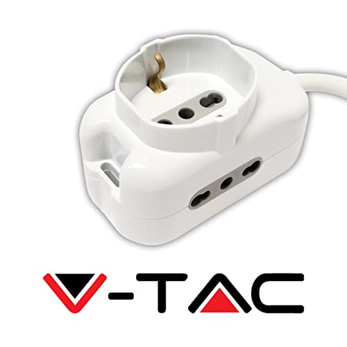 MULTIPRESA V-TAC: Ciabatta Multipresa Elettrica 3 Posti Cavo 1,3 mt - 2 Prese Laterali 10/16A Bipasso e 1 Frontale 10/16A Bipasso Shuko