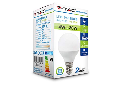 V-TAC 4W (25W equivalente) Risparmio energetico P45 Golf lampadina E14 SES (piccolo tappo a vite Edison) 2700K bianco caldo non dimmerabile - confezione da 10 [Classe di efficienza energetica G]