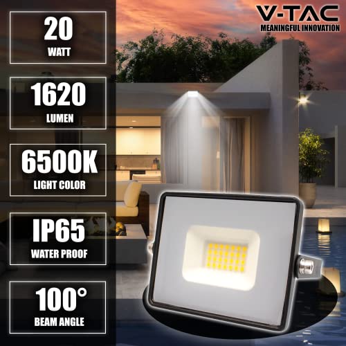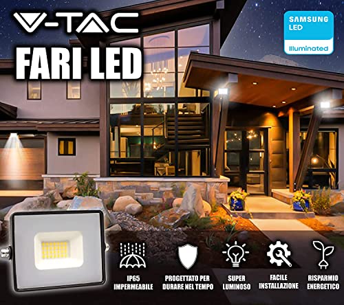 V-TAC Faro LED da Esterno 20W - [Ultima Generazione] - IP65-1620 Lumen - Proiettore Faretto LED Esterno Colore Nero per Casa, Giardino, Garage - Impermeabile - Fari LED Luce Bianca Fredda