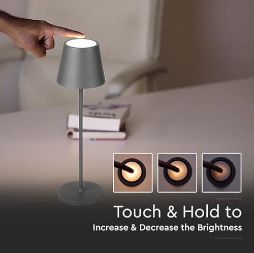 V-TAC Lampada da Tavolo senza Fili LED Dimmerabile con Comandi Touch - Lampada Grigia Wireless per Uso Interno ed Esterno IP54 da Casa o Ristorante - Batteria 4400 mAh - Luce 3000K Bianca Calda - 2W