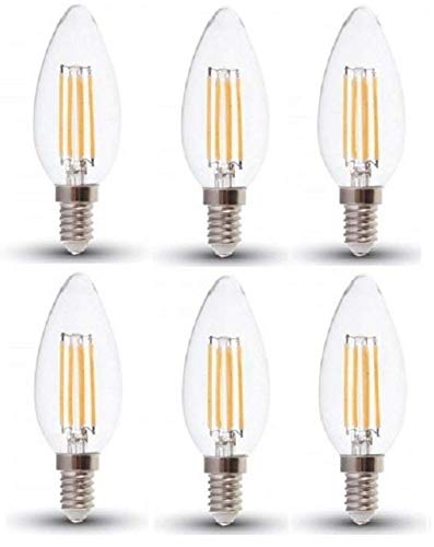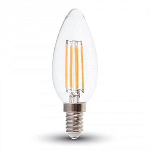 V-TAC - Lampadina a candela con filamento LED, Confezione da 6 lampadine, bianco caldo 2700 K, attacco piccolo a vite Edison E14/SES, 4 W/400 lumen, finitura in vetro col classico aspetto delle lampadine a incandescenza, 20,000 ore di vita media, non dimmerabile, 230 V, angolo di illuminazione 300 gradi, SKU: 4301