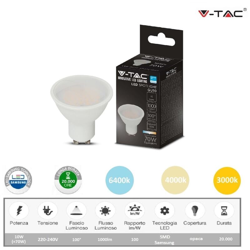 Lampadina LED V-Tac VT-271 con potenza di 10W e attacco GU10, spot in materiale termoplastico e copertura opaca. Faretto di alta luminosità, offrendo un equivalenza di 70W rispetto alle vecchie lampadine. I prodotti V-Tac utilizzano chip LED Samsung di nuova generazione, garantiscono una durata di 20000 ore, un'affidabilità superiore alla media e una più elevata efficienza energetica. Caratteristiche tecniche Modello VT-271 Tensione nominale 220-240V Potenza 10W Fascio luminoso 100° Chip led SMD Samsung Attacco GU10 Luce disponibile 6400k-4000K-3000k Flusso luminoso 1000lm Vita media 20000h Dimmerabile No Copertura Opaca Dimensioni Altezza 56.5 mm Diametro 50 mm