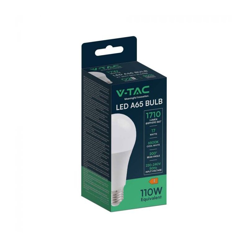 La lampadina LED V-TAC (SKU 214456) una soluzione di illuminazione affidabile ed efficiente per uso residenziale e commerciale. Con una potenza di 17W e un flusso luminoso di 1710 lm, offre una luce bianca calda con temperatura di colore di 2700K. Ha una forma A65 e un attacco E27, rendendola adatta alla maggior parte delle lampade standard. Realizzata in termoplastica di alta qualit, ha una durata di 20.000 ore e un grado di protezione IP20 per uso interno. La tecnologia LED SMD assicura un'illuminazione uniforme con un angolo di fascio di 200. compatibile con sensori e ha un ciclo di accensione/spegnimento di oltre 20.000 volte. Offre una garanzia di 2 anni e un consumo energetico di 17kW/1000h, contribuendo al risparmio energetico. Marchio: V-TAC Garanzia: 2 anni Classe efficienza: F Colore della Luce: Bianco caldo Potenza: 17W Flusso Luminoso: 1710 lm Chip LED: V-TAC Forma: A65 Grado di Protezione: IP20 Materiale: Termoplastica Attacco: E27 Cicli ON/OFF: >20000 Colore: Bianco CRI