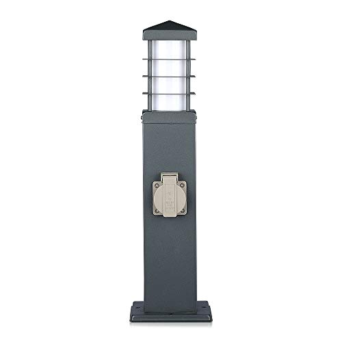 V-TAC Multipresa da Giardino a Colonna con Portalampada E27 e 2 Prese 16A in Acciaio Inossidabile h: 300mm Colore Grigio Scuro IP44