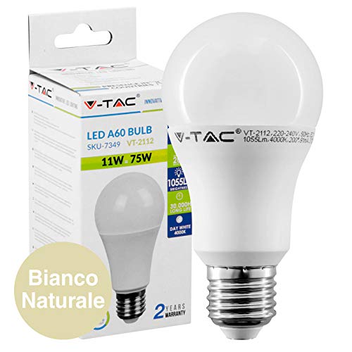 V-TAC 5 pezzi, Lampadine LED E27, 11W (1055 lumen equivalenti a 75W), Forma: Bulbo, Luce Bianco Caldo, Naturale o Freddo (Bianco Naturale)