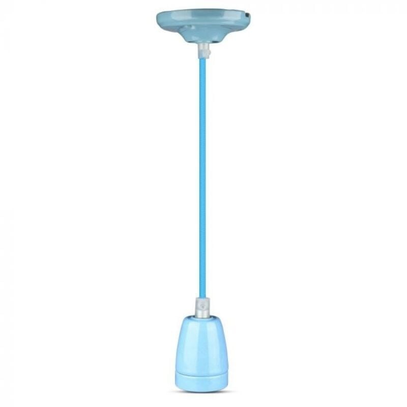 Portalampada pendente in porcellana soffitto lampadario azzurro E27 struttura in porcellana alimentazione 220-240 volt grado di protezione IP20 collegamento elettrico con morsetti a vite diametro portalampada 47 mm diametro coppa soffitto 105 mm altezza totale 744 mm
