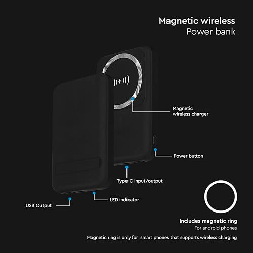 PERFETTAMENTE PROGETTATO PER IPHONE: Funziona perfettamente con iPhone serie 14/13/12 iPhone 12 /13 /14/ 15 /Pro /Mini / Pro Max. Questo Power Bank non si sovrappone alla fotocamera e permette, una volta agganciato, di posizionare l'iPhone in maniera verticale sul tavolo diventando uno stand di supporto rendendo più immediata la visione del display e delle notifiche.