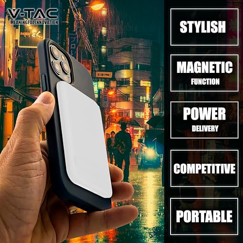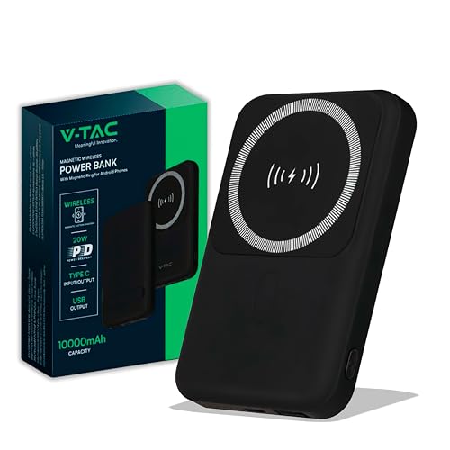 V-TAC Power Bank Magnetico compatibile con MagSafe - 10000 mAh - Ricarica Rapida PD 20W - Batteria esterna per Apple iPhone 12/13/ 14/15 / Mini/Pro/Max - Nero