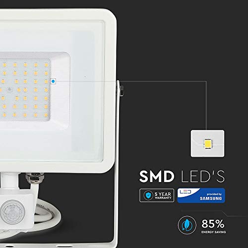 V-TAC Faro LED Chip Samsung 50W con Sensore di Movimento e Crepuscolare e Interruttore Manuale di Bloccaggio Colore Bianco 3000K IP65