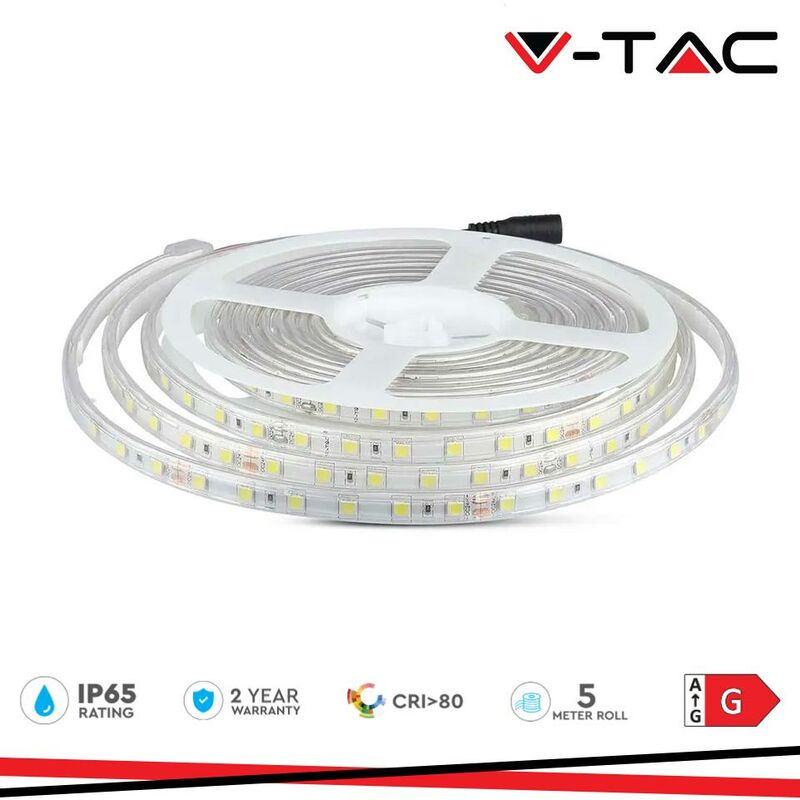 Striscia flessibile LED SMD5050 chip in gomma con retro biadesivo 3M ad alta resistenza. La striscia misura 5 metri ed composta da 60 LED per metro. Questa striscia LED ha una potenza di 10W al metro ed un rapporto di 83LM/W, con una potenza totale in flusso luminoso di 4.150LM (830LM/M). La striscia LED pu essere collegata direttamente all'impianto elettrico, mediante l'utilizzo di un alimentatore switching o tradizionale a spina da 24V DC (non incluso nella confezione). La striscia pu essere facilmente collegata all'alimentatore tramite jack 2.1. Protezione Waterproof IP65 che consente di installare la striscia LED sia in ambienti interni (locali, case, magazzini ecc..) che esterni (giardini, cortili, terrazze ecc..). Prodotto fornito di fascette in gomma trasparente per il fissaggio a parete. Tecnologia LED: SMD5050 Numero chip LED: 60LED al metro Lunghezza bobina: 5 metri Totale Led: 300pcs LED Alimentazione: DC 24V Attacco: Jack 2.1mm Colore della luce: Bianco naturale (3000K)