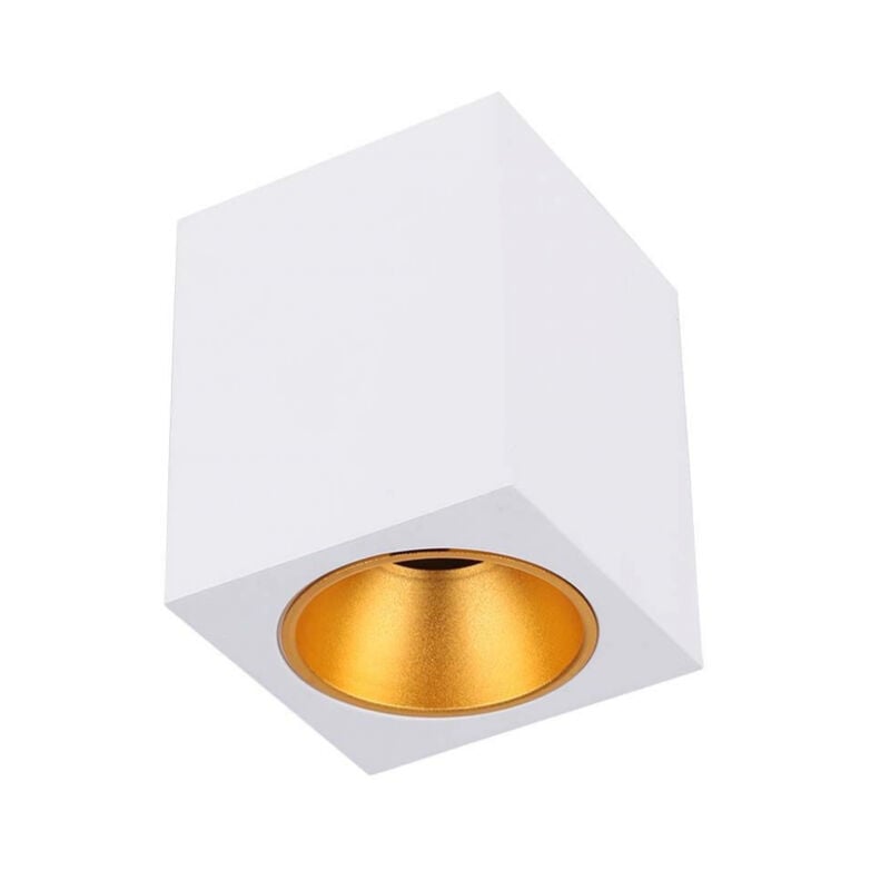 Portafaretto da soffitto (montaggio superficiale a plafone) quadrato per lampade GU10/ GU5.3/MR16 senza vetrino, adatto a qualsiasi tipo di controsoffittatura/soffitto. Corpo in metallo di colore bianco e con il riflettore colore oro rosa. Facile da installare ed un estetica elegante, installabile in ambienti interni sia classici, moderni che contemporanei. Utilizzabile con faretti LED o incandescenza con diametro di 50mm. Cavo di supporto GU10 incluso Caratteristiche Materiale: Metallo Colore: Bianco- riflettore oro rosa Orientabilità: No Installazione: A plafone Attacco: GU10 Carico max: 35W Grado di protezione IP: Waterproof IP20 (installabile solo in ambienti interni). Dimensioni: 100x100x120mm