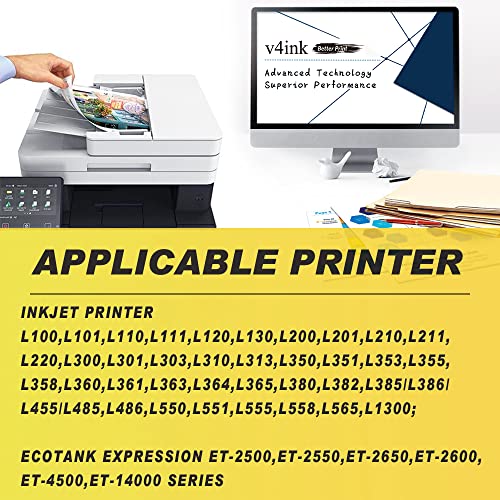 V4ink 664 Inchiostro per Epson T6641 T6642 T6643 T6644 EcoTank Flaconi di Inchiostro per Epson EcoTank ET-2650 L355 L555 ET-16500 ET-4550 ET-2500 ET-2550 ET-260 ET-3600 ET-4500