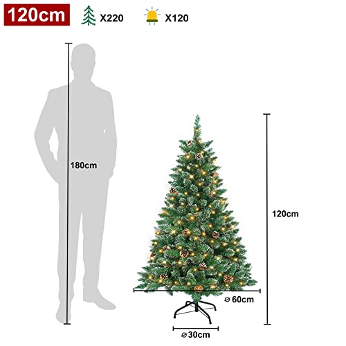 VA-Cerulean Albero di Natale artificiale con luce bianca calda, ignifugo, montaggio rapido, decorazione natalizia, albero di Natale con supporto (PVC verde con effetto neve, 120 cm)