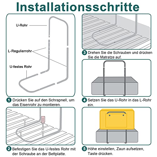 Altezza regolabile: questa sponda di sicurezza per bambini di alta qualità ha 5 aree regolabili in altezza da 40 a 60 cm, adatta per materassi di diversi spessori.