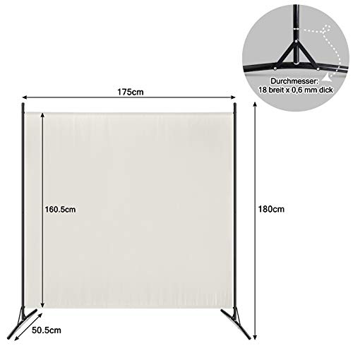 VA-Cerulean Paravento, divisorio per stanze, 1 pezzo, 175 x 180 cm, beige, divisorio per ufficio, balcone, giardino