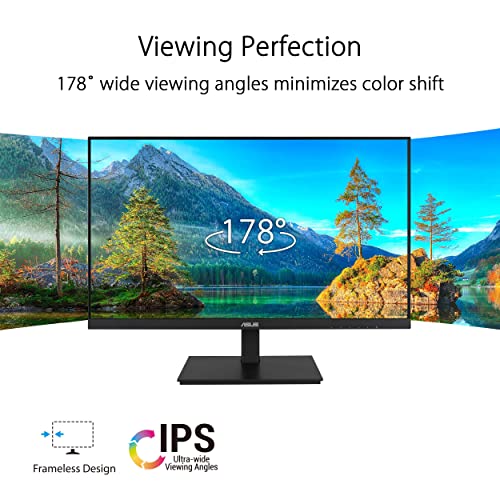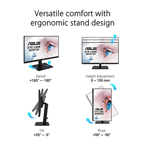 ASUS VA27DQSB Eye Care Monitor - 27", FHD (Full HD 1920 x 1080), IPS, Frameless, 75Hz, Adaptive-Sync, DisplayPort, HDMI, Eye Care, Low Blue Light, Flicker Free, Wall Mountable