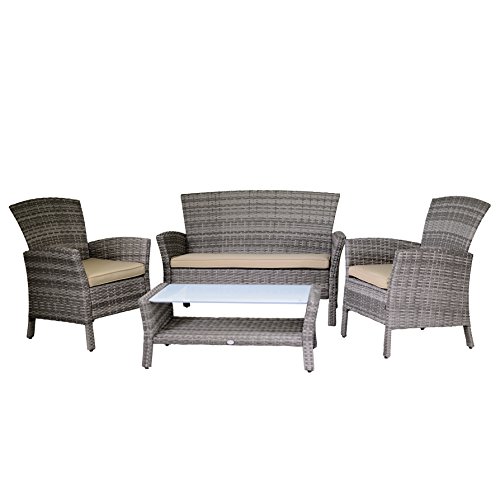 Vacchetti 6443700000 Salotto Amalia Polyrattan con Cuscini 4 Pezzi Smontato, Grigio, Grande
