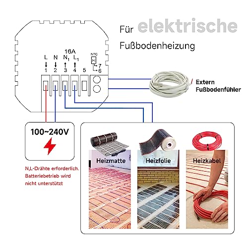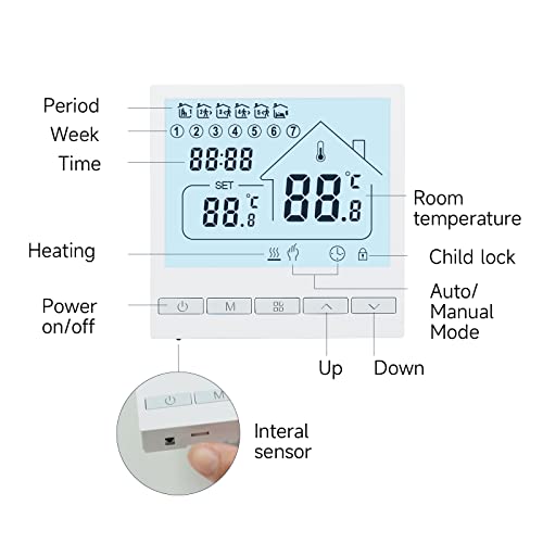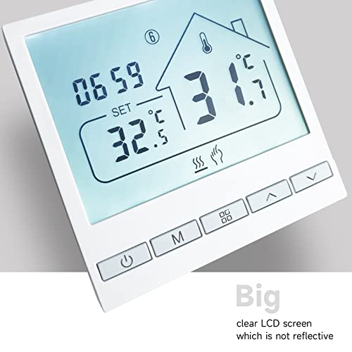 Applicabile a Quale Attrezzatura: Adatta per apparecchiature elettriche di riscaldamento a pavimento come cavi, pellicole riscaldanti, tappetini riscaldanti, ecc. si prega di assicurarsi che sia adatto per l'apparecchio nella vostra casa quando lo si seleziona.Tensione: AC 95~220V, 50~60Hz, corrente di carico: 16A.