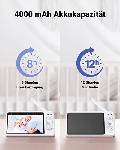 Vacos Baby Monitor con telecamera e audio, 720P 5'' LCD a colori con slot per scheda SD, temperatura, movimento e allarme sonoro, PTZ remoto, visione notturna a infrarossi, 1.000 piedi di portata