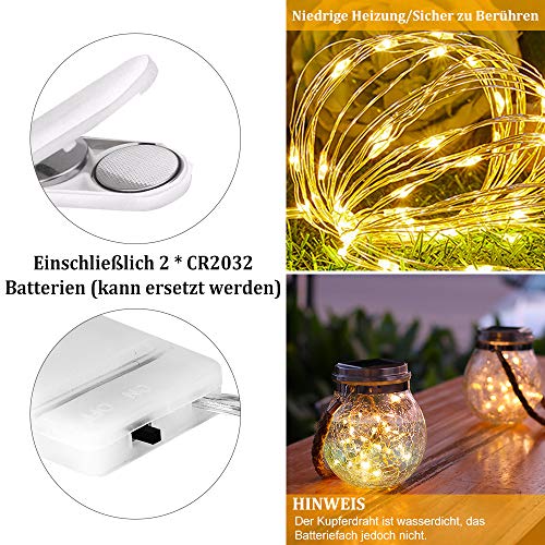 【Lucine a batteria a risparmio energetico】 Ci sono 16 luci fata in confezione, ogni lucina a pulsante è dotata di 20 LED super luminosi. Ogni catenina è alimentata da 2 batterie CR2032 (incluse). I pacchi batteria con interruttore ON/OFF sono piccoli e abbastanza compatti da poter essere riposti discretamente.