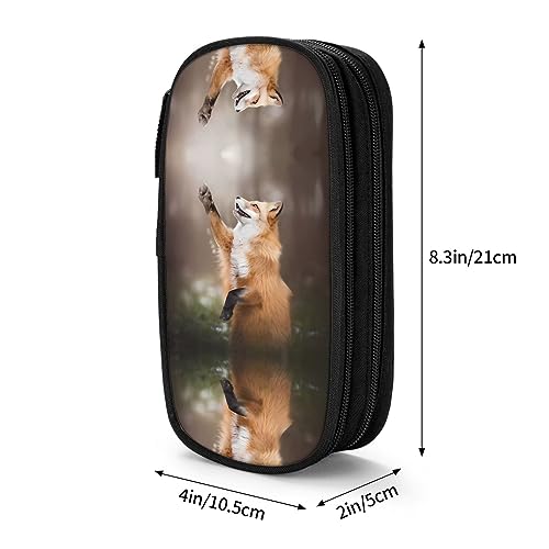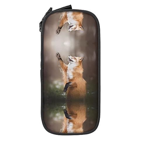VacsAX Astuccio in tessuto Oxford, resistente ed elegante, per scuola e ufficio, astuccio per matite con motivo volpe, Nero, Taglia unica, Porta carte
