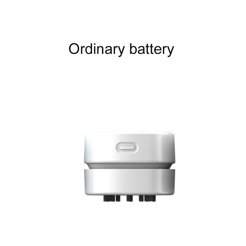 Product description: Smart sweeping robot portable vacuum cleaner gift Creative and practical desktop vacuum cleaner household mini vacuum cleaner. Desk corners are difficult to clean. It is suitable for cleaning foreign objects, hair and pet hair in the crevices of the keyboard. Desktop paper shavings, eraser mud, pencil confetti. Desktop dust, car vacuum cleaner. Practical functions: paper dust and dust are easily sucked away, 360-degree rising wind direction, strong suction, spiral blades, stylish appearance, small size. Intelligent chip core control, material upgrade anti-collision protection. product information: Product Name: Conventional battery Colors: White, Black Temperature control: none Product name: battery type desktop vacuum cleaner Product size: 8*6.5cm Product weight: 130g Working voltage: 2*1.5V AA battery(Does not contain) Working current: ≤800mA Working mode: switch Working time: continuous about 90-150 minutes (depending on the battery) Executive standard: GB